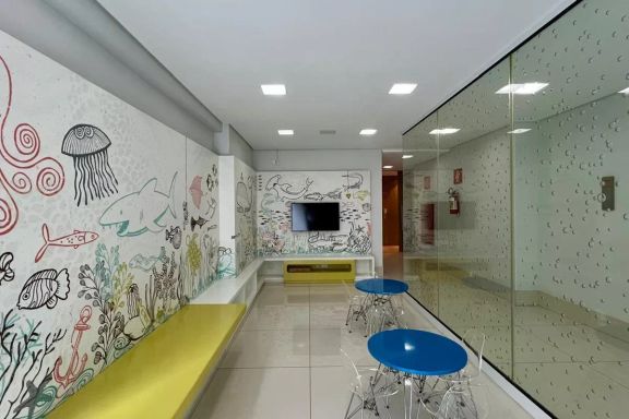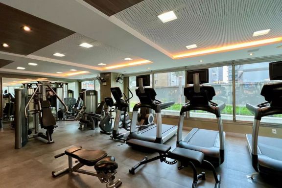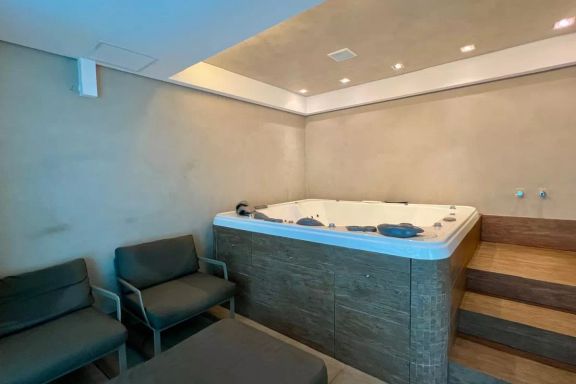 Portaria 24h, Alarme, Hall social decorado, Elevador, Salão de festas, Espaço gourmet, Espaço kids, Academia, Piscina coberta e descoberta, Quadra esportiva, Sauna, Água e gás individual, Aquecimento solar.