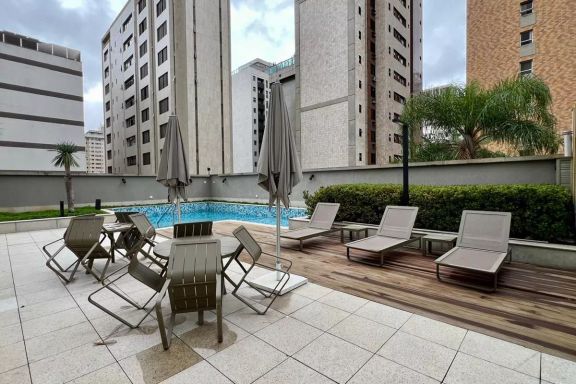Apartamento de alto luxo em Lourdes, a poucos passos do Minas 1, com um diferencial raro: varanda gourmet com vista totalmente privativa.
