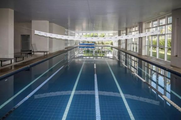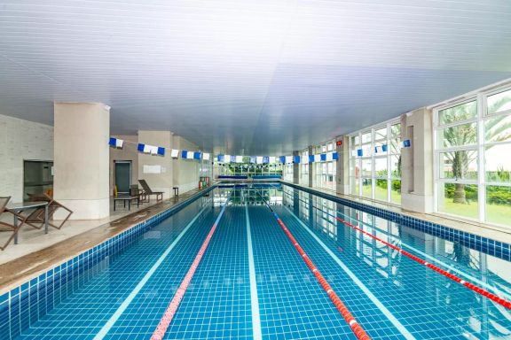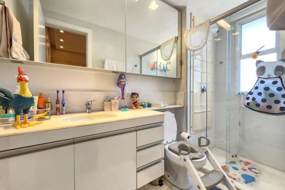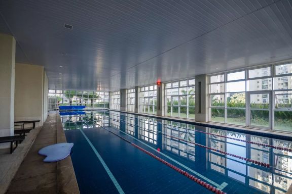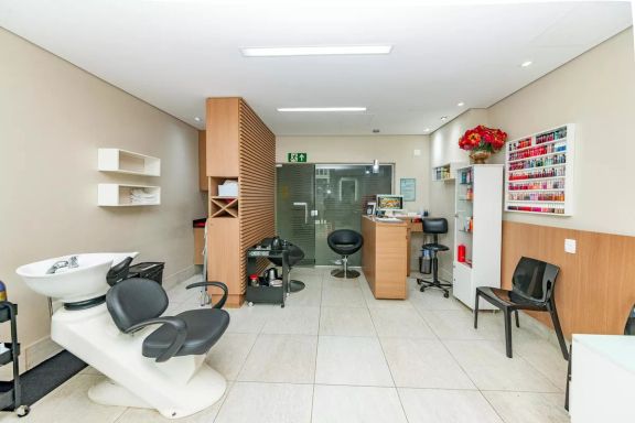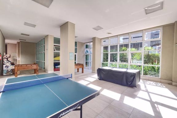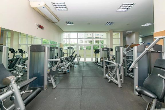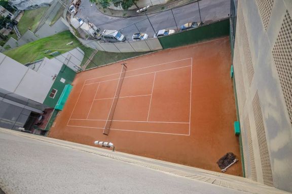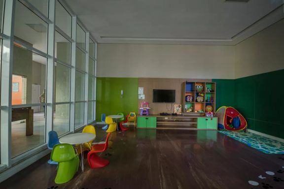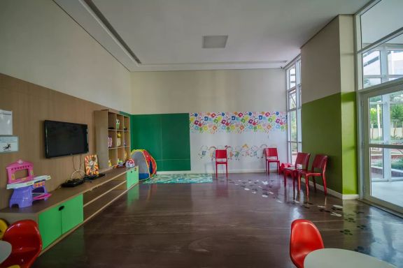 Playground, Piscina, Churrasqueira, Quadra esportiva, Academia, Salão de festas, Sauna, Brinquedoteca, Corrimão, Salão de jogos, Elevador, Portaria 24h.